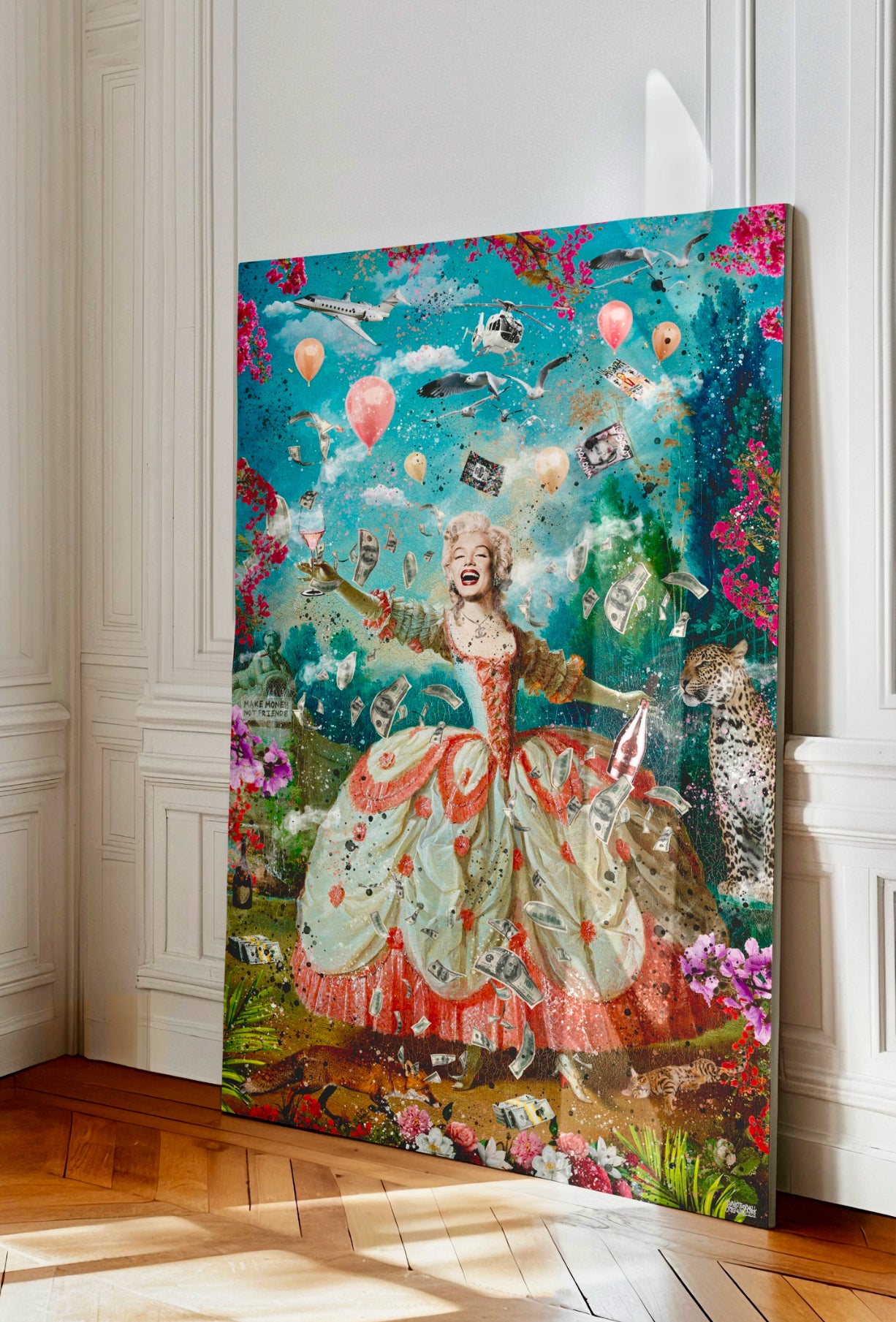 The artwork features a flat surface printed on canvas. Each of our canvas prints is hand-stretched over a frame made from FSC-certified pine. The painting is delivered wrapped in plastic within a large box and is ready to hang on the wall.